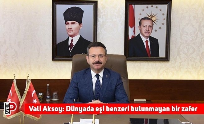Aydın Valisi Hüseyin Aksoy, 30 Ağustos Zaferi’nin fedakarlık ve kararlılığın göstergesi olduğunu ifade ederek “Dünyada eşi benzeri bulunmayan bir zaferdir” dedi.