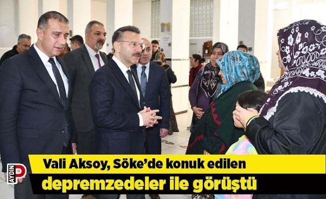 Toplanan yardımlarla ilgili bilgi alan Vali Aksoy daha sonra Söke Anadolu Lisesi Öğrenci pansiyonunda kalan depremzedelerle bir araya geldi.