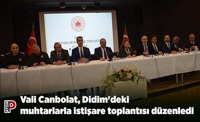 Aydın Valisi Yakup Canbolat başkanlığında Didim’de muhtarlar istişare toplantısı düzenlendi. Toplantıda kurum müdürleri sunum yaparken, ardından muhtarlar dinlendi.