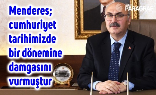 Vali Köşger, mesajında; “Efeler diyarı Aydın’ımızın yetiştirdiği, kurtuluş savaşı gazisi, demokrasi şehidi Başbakan Adnan Menderes; Cumhuriyet tarihimizde bir döneme damgasını vurmuş, yaptığı hizmetlerle milletimizin gönlünde taht kurmuş güzide devlet adamlarımızdandır.