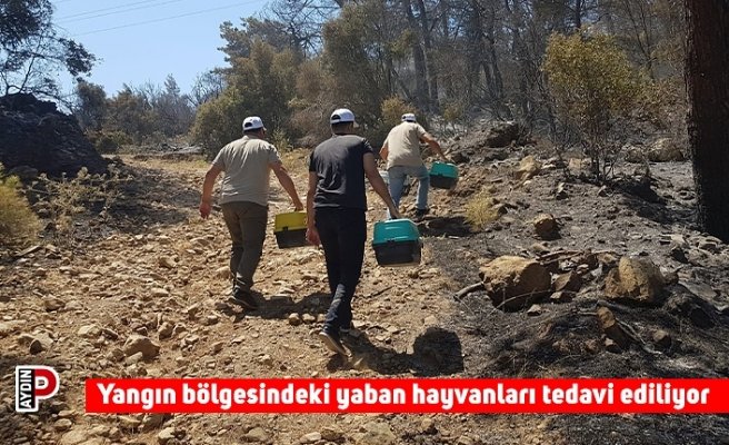 Aydın’ın Söke ilçesindeki yangın bölgesinde alevlerden etkilenen yaban hayvanlarının tedavisi gerçekleştiriliyor.