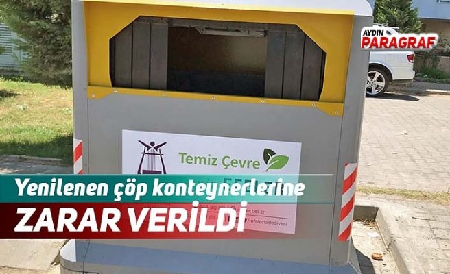 Efeler Belediyesi’nin hafta başında yenilediği çöp konteynerlerine kimliği belirsiz kişi veya kişiler tarafından zarar verildi.