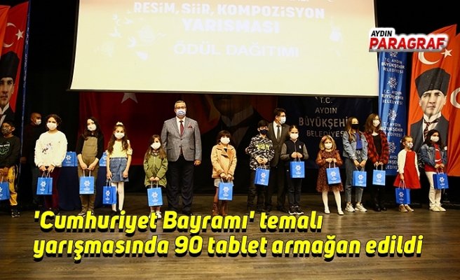 Aydın Büyükşehir Belediyesi tarafından düzenlenen “Cumhuriyet Bayramı” temalı resim, şiir ve kompozisyon yarışması sonuçlandı. Yarışmada 90 öğrenci tablet kazandı. Eğitimlerini internet üzerinden yapan çocuklar ödülleriyle derslerini takip edeceklerini belirtip Aydın Büyükşehir Belediye Başkanı Özlem Çerçioğlu’na teşekkür etti.