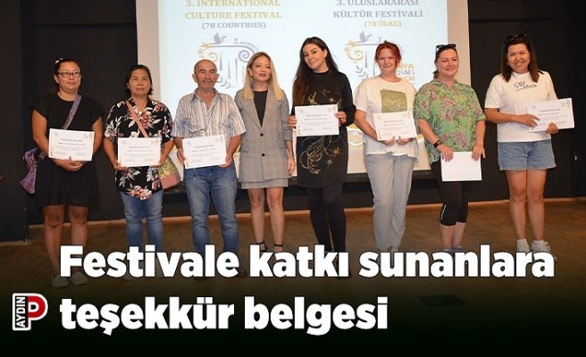 Bu yıl üçüncüsü gerçekleştirilen “Dünya Didim’i Seviyor” festivaline katılan ülke temsilcilerine ve sponsorlara teşekkür belgesi verildi.