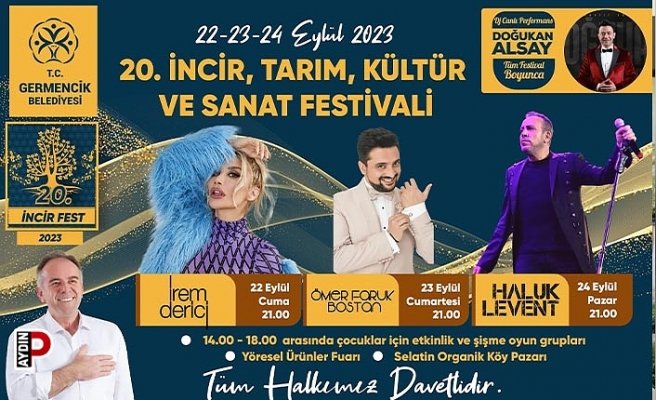 Germencik Belediyesi, 22-23-24 Eylül tarihlerinde gerçekleşecek olan 20. İncir, Tarım, Kültür ve Sanat Festivali için hazırlıklarını tamamladı. İncirin tanıtılmasına katkı sağlayan festival çerçevesinde İrem Derici, Ömer Faruk Bostan ve Haluk Levent sahne alacak. Ayrıca geleneksek olarak düzenlenen incir yarışması da gerçekleştirilerek en iyi incir üreticileri seçilecek.
