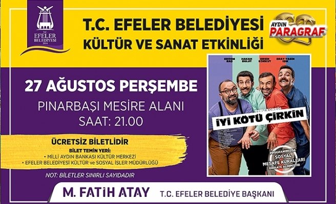 Efeler Belediyesi Kültür-Sanat etkinlikleri kapsamında iyilik ve kötülük kavramlarının trajik bir olay örgüsü içinde esprili bir dille anlatıldığı ’İyi Kötü Çirkin’ adlı yerli komedi tiyatro oyunu 27 Ağustos Perşembe günü sahnelenecek. Ünlü oyuncuların yer aldığı tiyatro oyunu ücretsiz olarak Efelerli vatandaşlarla buluşacak.