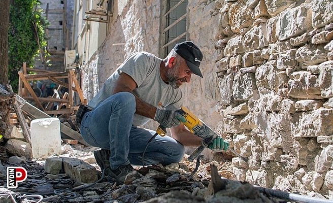 Kuşadası Belediyesi, kent merkezinde bulunan tarihi sur duvarları ile burçlarda başlattığı restorasyon çalışmasını sürdürüyor.