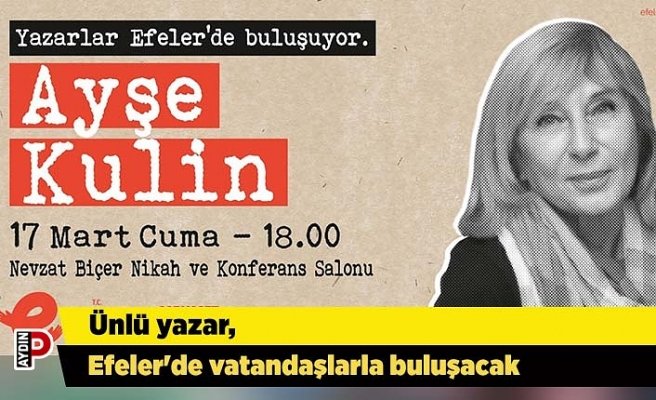 Efeler’i marka kent yapma vizyonuyla hareket eden Başkan Mehmet Fatih Atay, ilçeye kazandırdığı çok sayıda sosyal projenin yanında düzenlediği kültür-sanat etkinlikleriyle de vatandaşlardan takdir görüyor. Efeler halkının yoğun ilgi gösterdiği ‘Yazarlar Efeler’de Buluşuyor’ etkinliğinin yeni konuğu, kaleme aldığı biyografik eser ve romanlarla çok okunan yazarlar arasında yer alan Ayşe Kulin olacak. Birçok kitabı beyaz perdeye taşınan ödüllü yazar ve gazeteci Kulin, 17 Mart Cuma günü saat 18.00’de Nevzat Biçer Nikah ve Konferans Salonu’nda, vatandaşlarla bir araya gelecek.