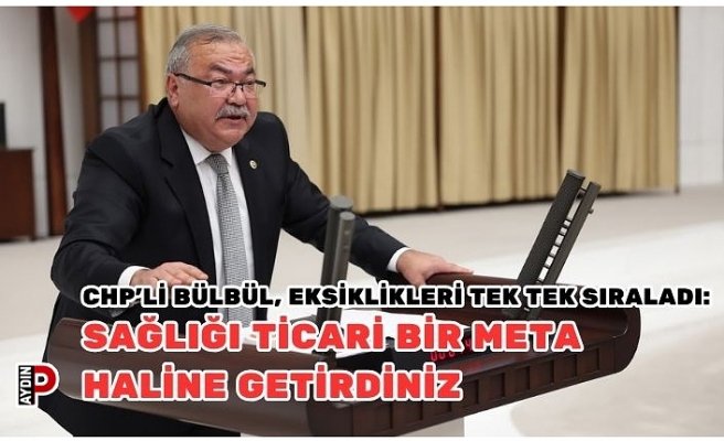 CHP Aydın Milletvekili ve TBMM Adalet Komisyonu CHP Grup Sözcüsü Süleyman Bülbül, Aydın’daki sağlık ve uyuşturucu sorununu Meclis gündemine taşıdı. CHP’li Bülbül: “Sağlığı ticari bir meta haline getirdiniz. Aydınlı hemşehrilerim uzman doktor ve tıbbi malzeme eksikliğiyle yetersiz hastane ve yoğun bakım yataklarıyla karşı karşıya” dedi.