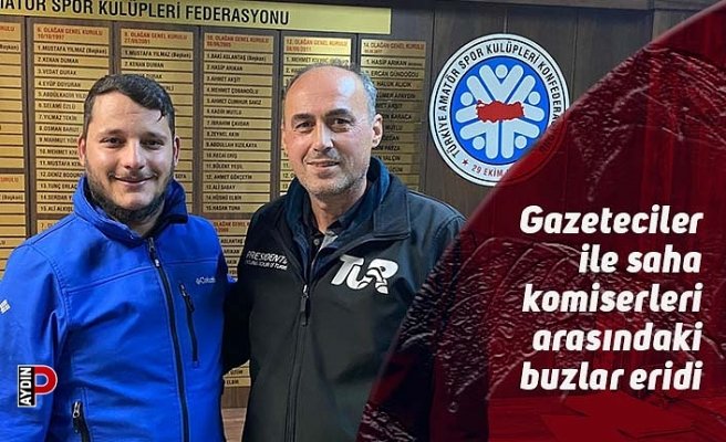 Aydın Futbol İl Temsilcisi Hakan Açıkgöz’ün arabuluculuğu ile saha komiserleri ve gazeteciler arasında yaşanan gerginlik, tatlıya bağlandı. Görüşme sonunda her iki taraf arasında buzlar eridi.