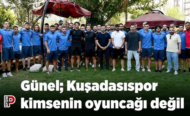 Başkan Günel, “UEFA İcra Kurulu Üyesi Servet Yardımcı’nın adını kullanarak kulübün almaya çalışan Ertan Can Yazıcı’nın sahibi olduğu yurt dışı bağlantılı Help Steps isimli şirketin oyununa gelmeyiz. Kuşadasıspor Kulübü kimsenin oyuncağı değildir. Biz yeni sezonda da değerli yöneticilerimizle yine takımımıza sahip çıkıp, Kuşadasısporumuzu 2’nci Lig’e çıkarmak için canla başla mücadele edeceğiz” dedi.