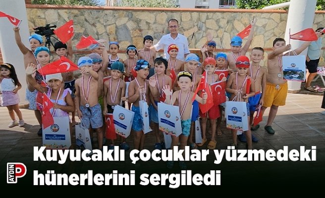 Aydın’ın Kuyucak ilçesinde yaz döneminde açılan yüzme kursları tamamlandı. Modern havuzlarda eğitmen ve cankurtaranlar eşliğinde yüzme öğrenen çocuklar öğrendiklerini sergiledi.