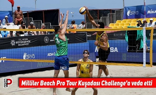 Türkiye Voleybol Federasyonu (TVF), Aydın Büyükşehir Belediyesi ve Kuşadası Belediyesi iş birliğiyle Davutlar Sevgi Plajı’nda düzenlenen ‘Beach VW Pro Tour Kuşadası Challenge’da’ Hasan Hüseyin Mermer-Safa Urlu ikilisinden oluşan Türkiye Plaj Voleybolu Milli Takımı, Fransa’ya 2-1’lik skorla mağlup olarak turnuvaya veda etti.