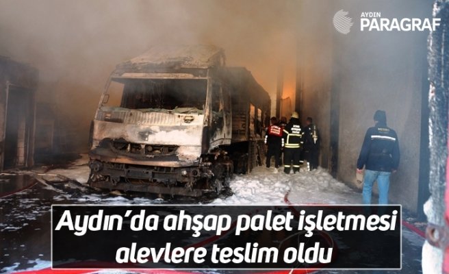 Aydın’ın Efeler ilçesinde ahşap palet işletmesinde çıkan yangın büyük maddi hasara yol açarken, işletme içerisinde bulunan bir tır tamamen yanarak kül oldu.