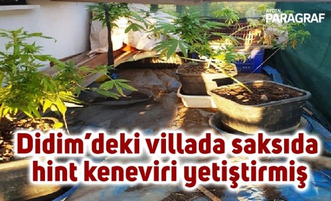 Didim’deki villada saksıda hint keneviri yetiştirmiş