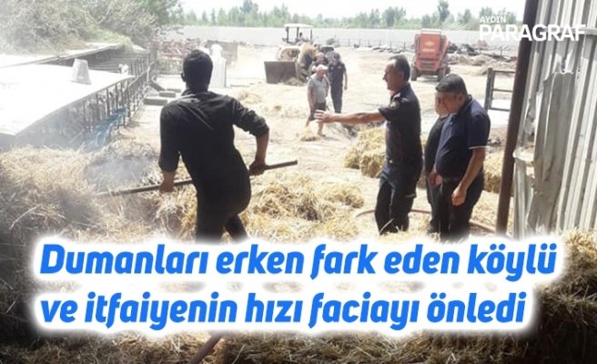 Edinilen bilgiye göre, dün akşam saatlerinde Kocagür mahallesinde tarla kenarındaki kuru otlar bir anda tutuştu. Kısa sürede büyüyen yangın Ayhan Öncer’in çiftliğinin yem ve ot deposuna kadar ulaştı. Bir anda ot deposundan dumanların yükselmesi üzerine köylülerle Aydın Büyükşehir Belediyesi ekipleri hemen saman ve ot deposuna müdahale etti. Vatandaşların duyarlılığı ve itfaiye ekiplerinin hızı sayesinde yangın önemli bir hasara ulaşmadan söndürüldü.