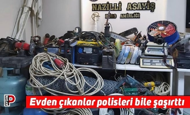 Aydın’ın Nazilli ilçesinde polisin düzenlediği operasyonda elektrikli testere, televizyon, kaynak makinası ve benzeri çok sayıda çalıntı eşya ele geçirildi.