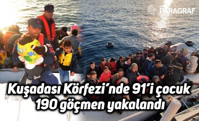 Kuşadası Körfezi’nde sahil güvenlik ekiplerinin gerçekleştirdiği 4 ayrı operasyonda 91’i çocuk, 38’i kadın toplam 190 düzensiz göçmen yakalandı.