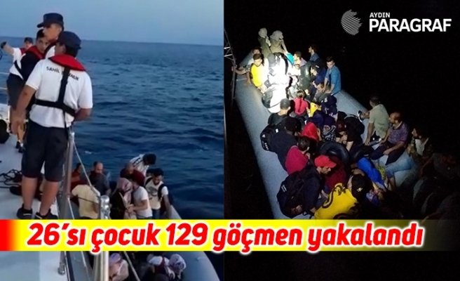 Kuşadası Körfezi’nde yasa dışı yollardan yurt dışına kaçmaya çalışan 26’sı çocuk, 33’ü kadın toplam 129 düzensiz göçmen yakalandı.