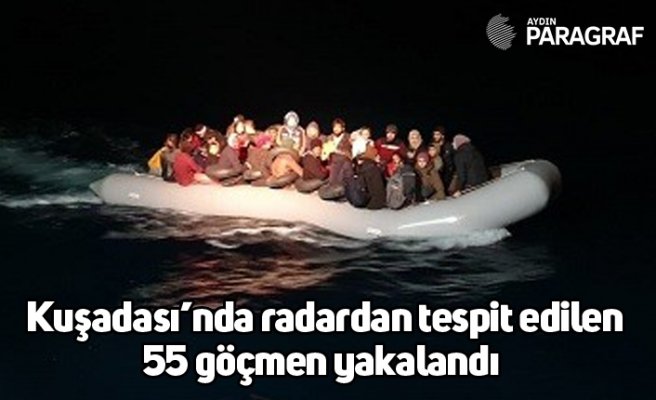 Aydın’ın Kuşadası ilçesinde lastik botla yasa dışı yollarla Yunan adalarına geçmeye çalışan 55 kaçak göçmen, Sahil Güvenlik mobil radarı tarafından tespit edilerek yakalandı.