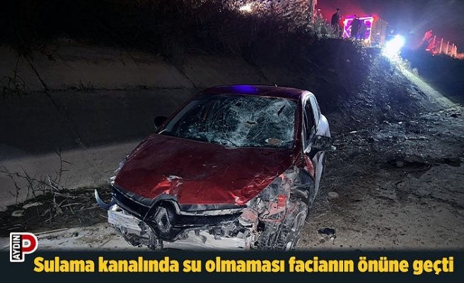 Aydın’ın Efeler ilçesinde bir otomobilin sulama kanalına düşmesi sonucu meydana gelen trafik kazasında sulama kanalında su olmaması facianın önüne geçerken, otomobil sürücüsü ise kazayı yara almadan atlattı.