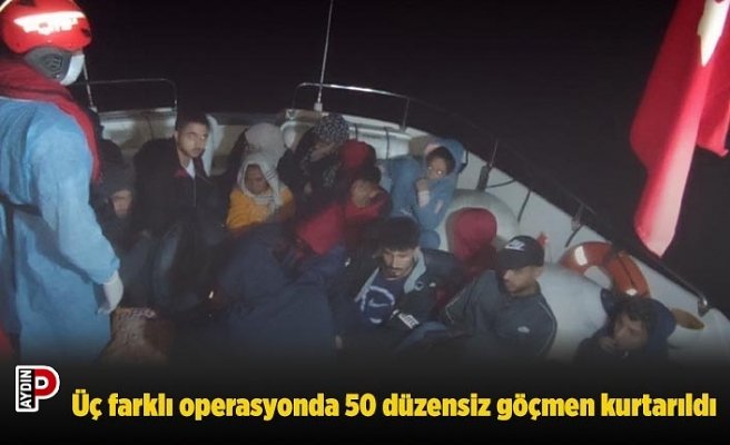 Üç farklı operasyonda 50 düzensiz göçmen kurtarıldı