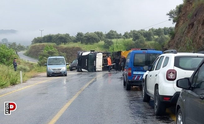 Aydın’ın Köşk ilçesinde taş yüklü kamyon virajı alamayarak devrildi. Meydana gelen kazada kamyon şoförü yaralanırken, çevre sakinleri de bölgede sık sık aşırı yük ve sürat sebebiyle kamyon kazalarının yaşandığına dikkat çekerek, yetkililerden denetim yapılmasını istedi.
